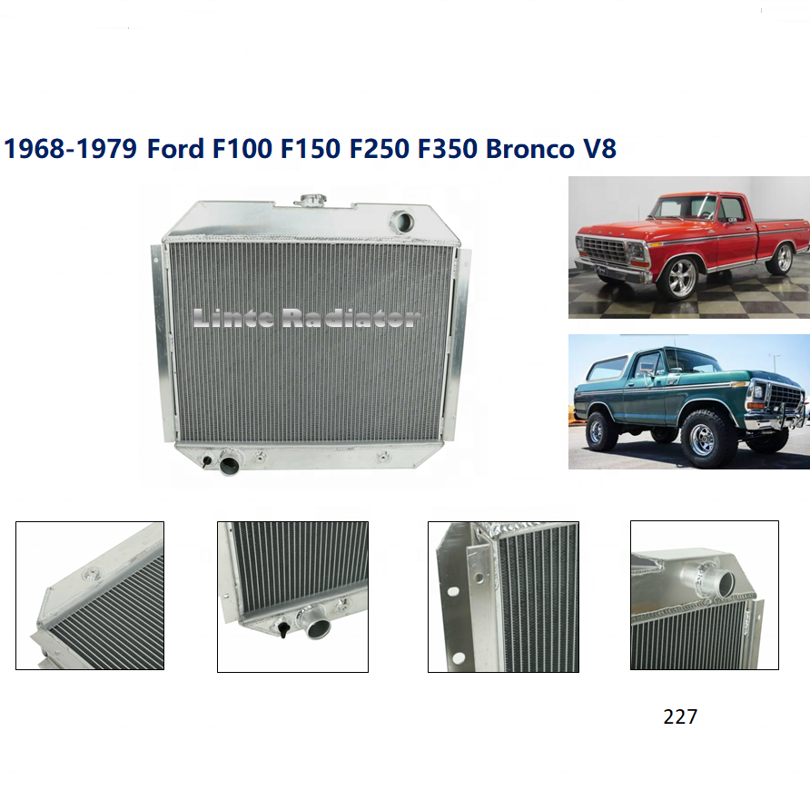 Radiador totalmente de aluminio LINTE para Ford F100/F150/F250/F350/Bronco V8 (1968-1979)