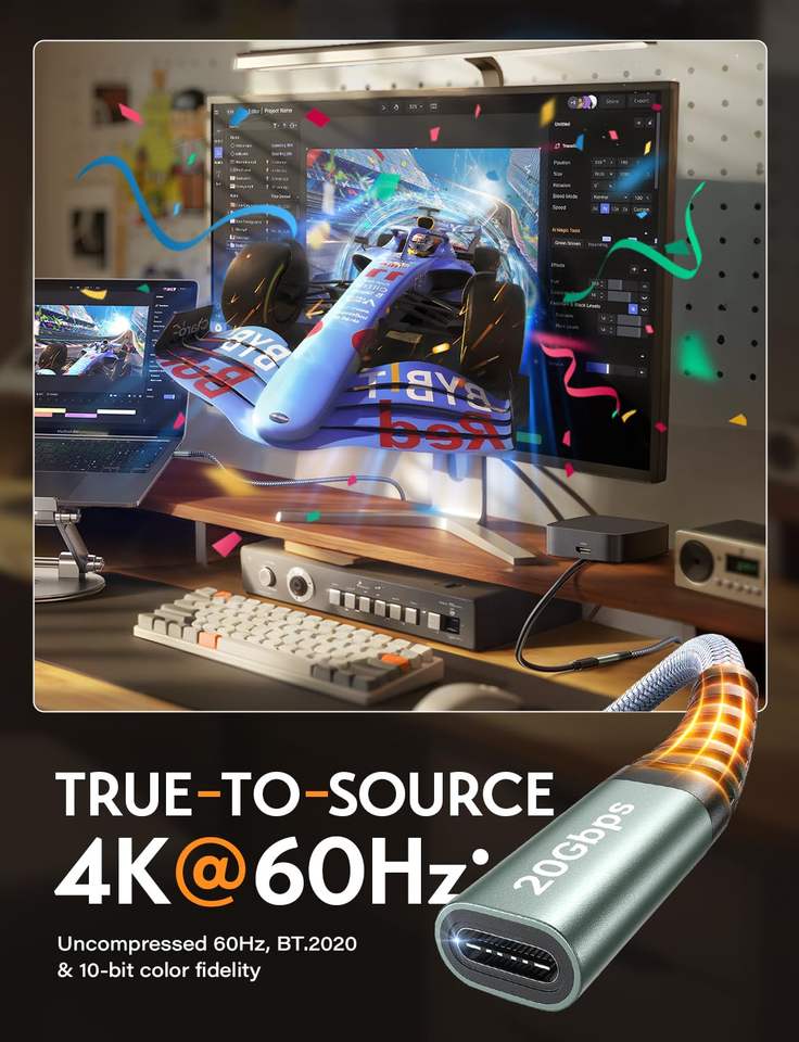 Cable de extensión USB C LISEN 240W 20Gbps 4K 60Hz Macho a Hembra