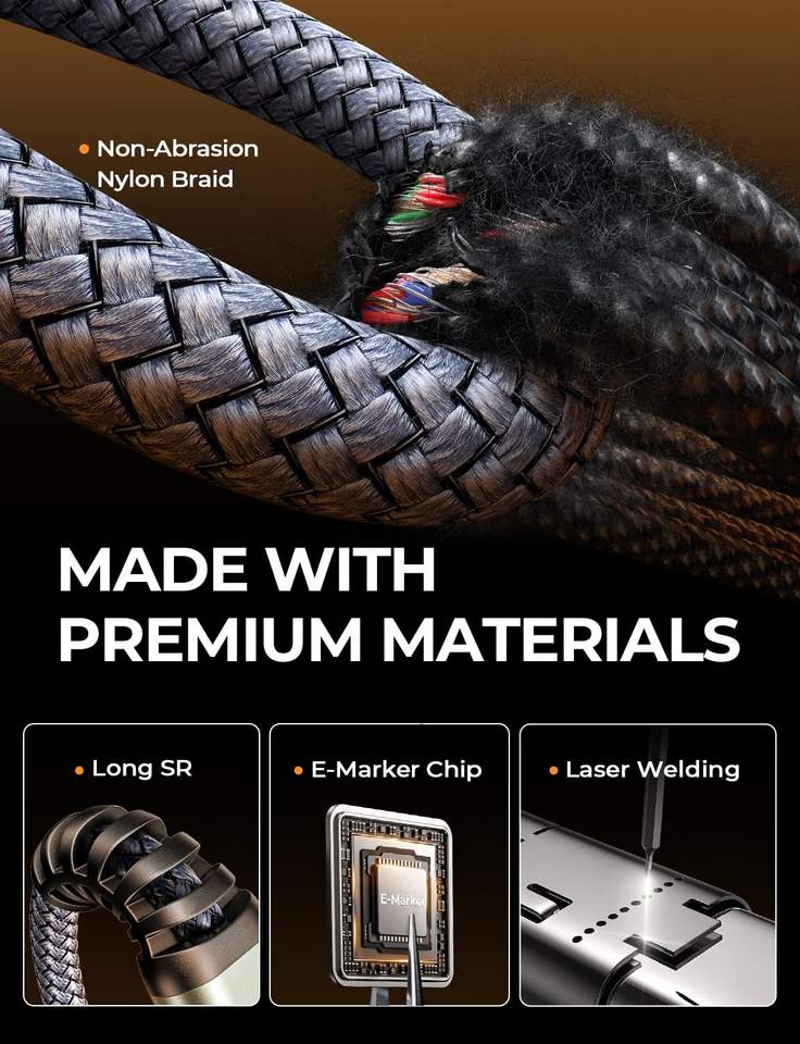 Carga rápida PD de 240W, datos de 20Gbps, video 4K@60Hz, trenzado de nailon