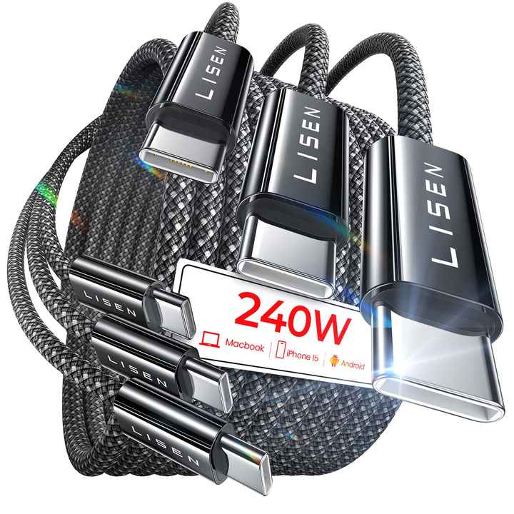 LISEN Cable de Carga Rápida USB-C a USB-C de 240W - Paquete de 3