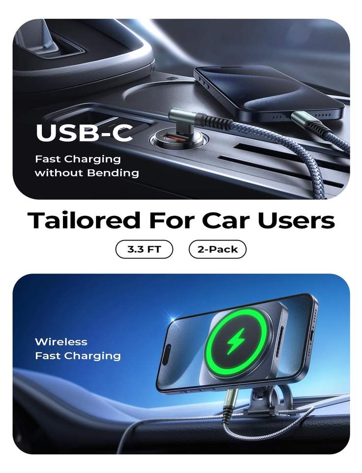 Característica:Carga PD de 60W, Carga Rápida de 3A, Codo de 90 Grados, Trenzado de Nylon