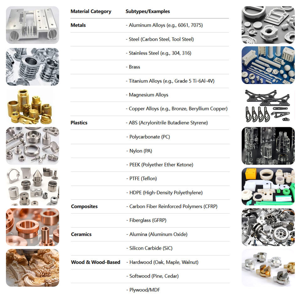 Acero inoxidable, Metales preciosos, Metales endurecidos, Cobre, De bronce, Latón, Aluminio, Aceros aleados