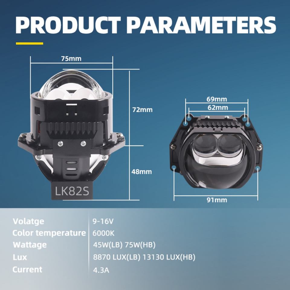 Nombre del producto:LK82S Lente Cuadrada Bi-LED de Doble Dirección de 3.0 Pulgadas