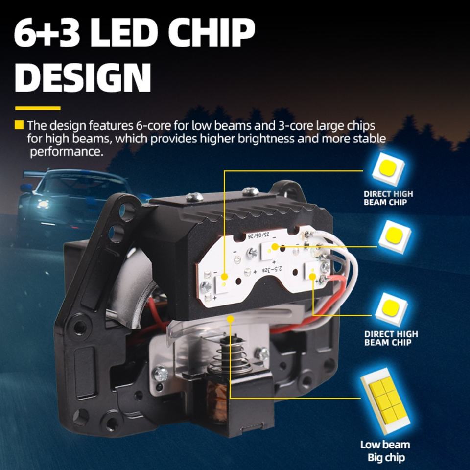 LK83 Lente de Proyector Bi-LED de 3 Pulgadas con Tres Láseres Directos, Luz LED de 6000k para Faros Delanteros de Coche H4 H7 9005 9006, Kit de Conversión