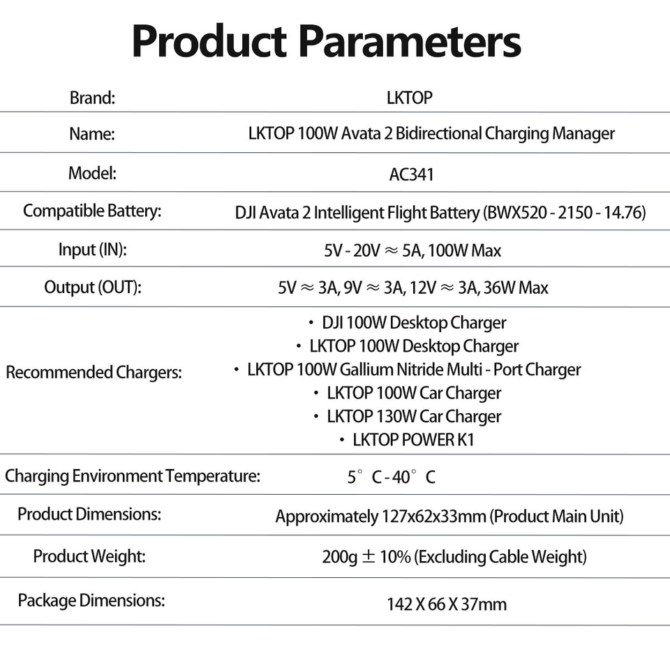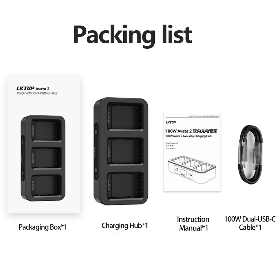 LKTOP 100W Avata 2 Centro de Carga Bidireccional - Carga Rápida en Paralelo de 3 Baterías en 70 Min, Pantalla LED y Control por Aplicación