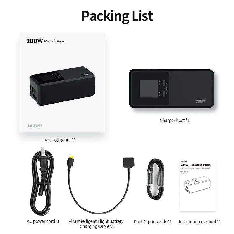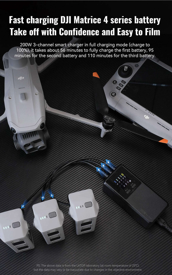 LKTOP - Centro de Carga Inteligente de 200 W y Tres Vías para DJI Mavic 4 Pro, Cargador Rápido Paralelo con Modo de Almacenamiento