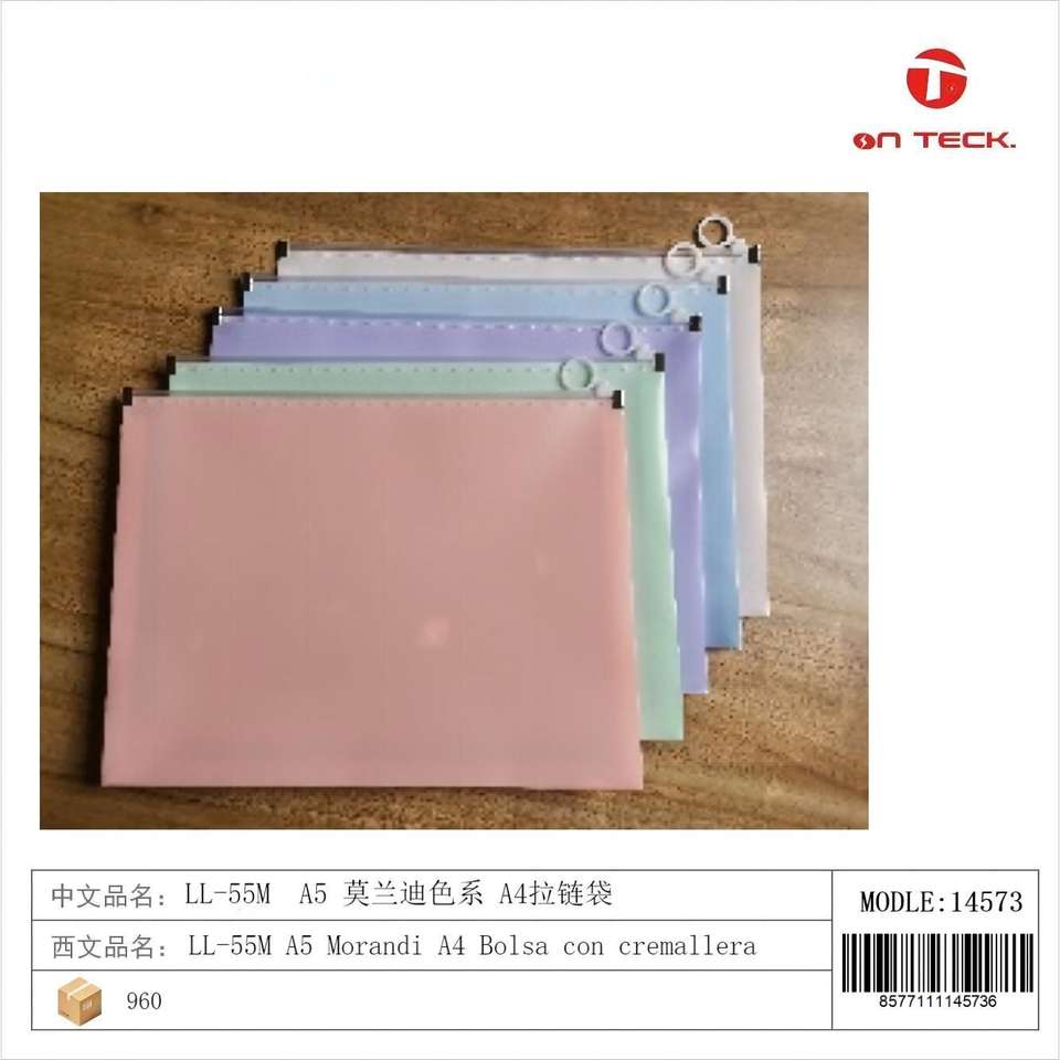 On Teck Sa De Cv A5 Morandi Bolsa de archivo con cremallera 14573 Organizador portátil duradero para uso en la oficina y la escuela
