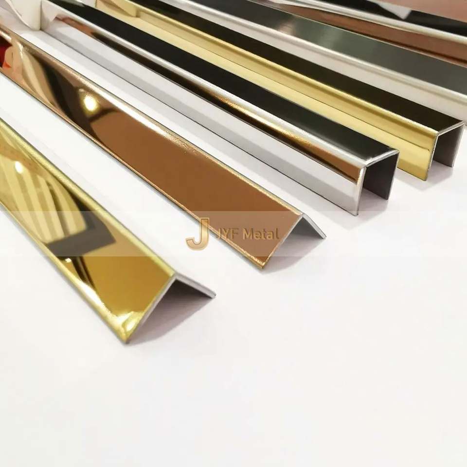 LL111 Protector de Esquinas Metálico en Forma de L de Acero Inoxidable Dorado para Alfombras y Azulejos, Accesorio con Perfiles Decorativos