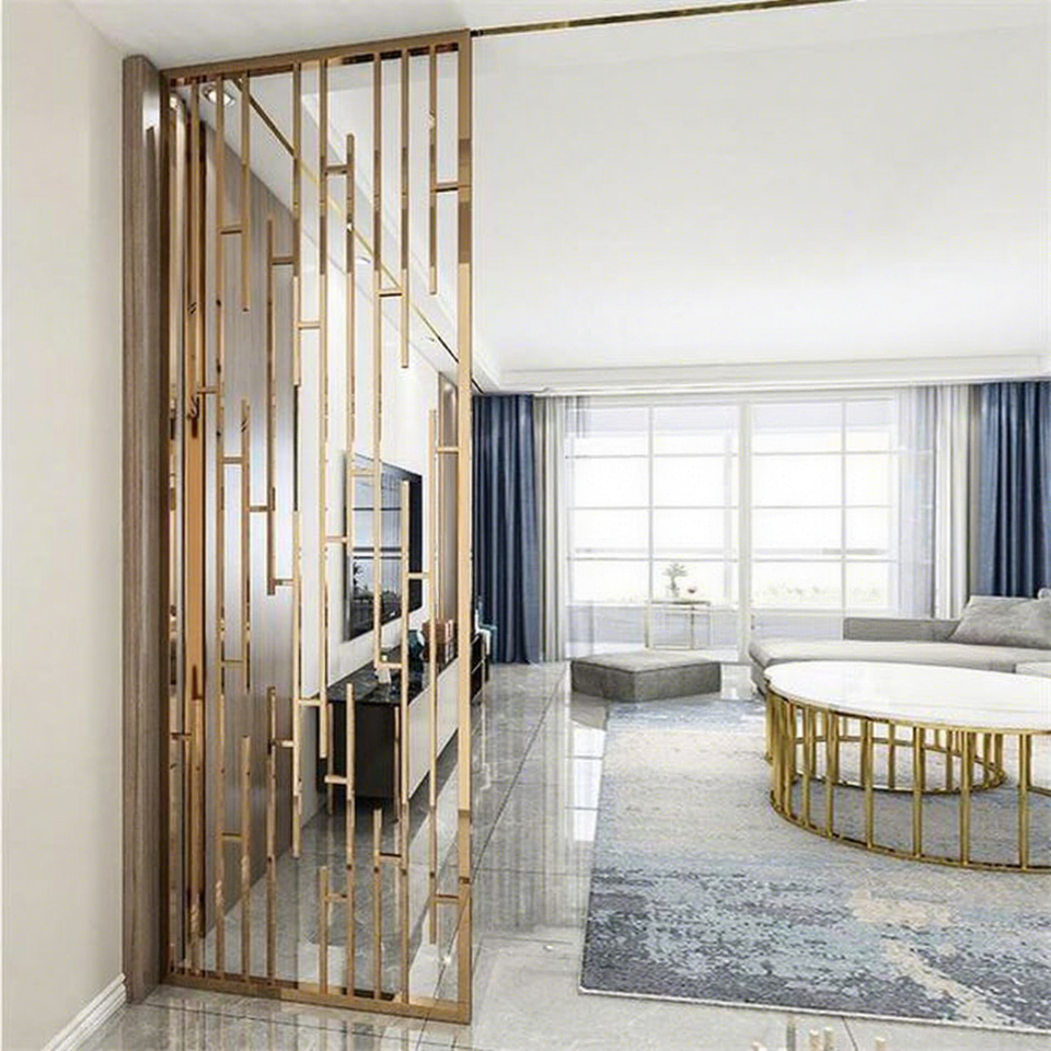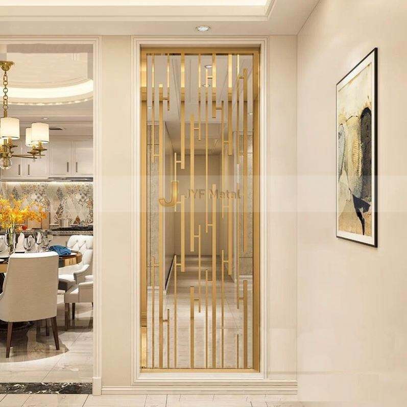 Panel Divisor de Espacios Metálico Translúcido LL335, Separador de Pared de Acero Inoxidable Dorado Cepillado, Corte Láser, ¡Venta Caliente!