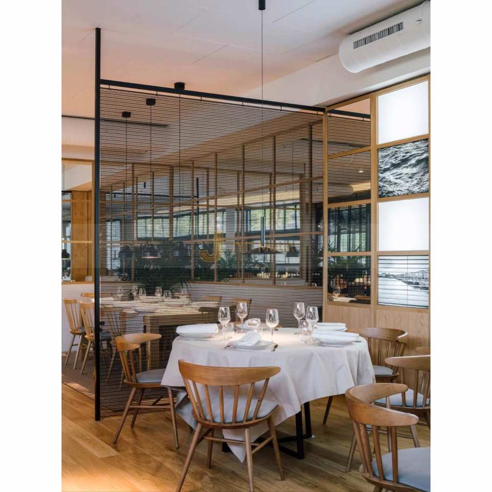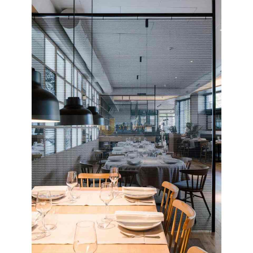 Mamparas Metálicas Translúcidas Impermeables para Restaurantes LL403, Malla Metálica de Acero Inoxidable Cepillado Negro Mate PVD