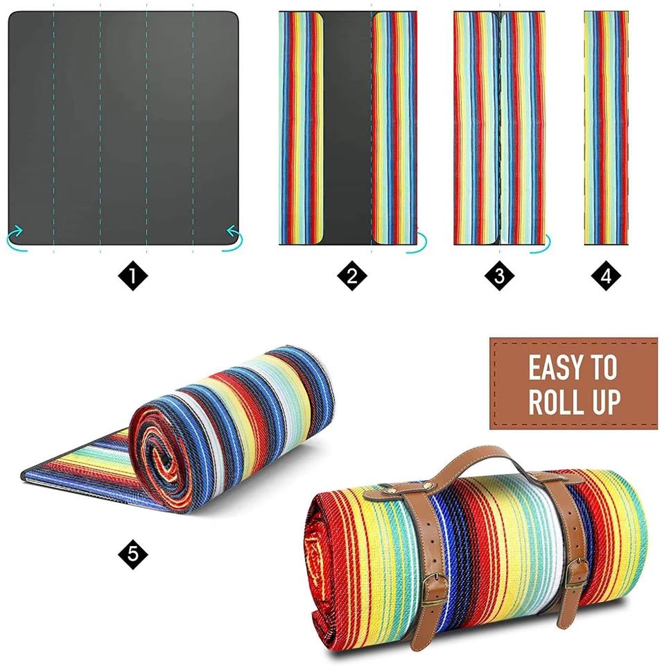 LLOYDBERG Tapete de Playa Acolchado, Tapete de Picnic Plegable Personalizado de Tres Capas, Manta de Picnic Impermeable Personalizada con Correa de Cuero