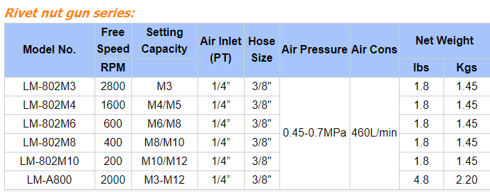 LM802 Pneumatic Pull Setter Kit de herramientas de tuerca de remache de aire Remachadora neumática para tuercas de Pistola de tuerca de remache de aire neumático Pistola Rivnut