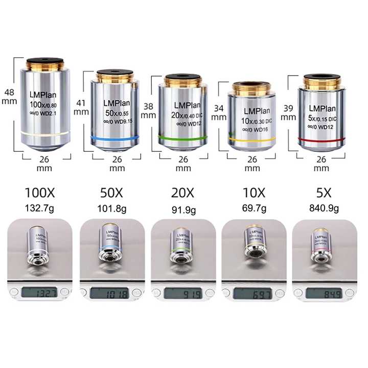 LMP Infinite Plan Larga distancia de trabajo F = 200 Microscopio metalográfico Lente de objetivo de interferencia diferencial DIC de alta potencia