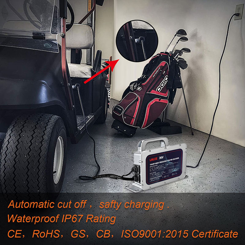 LNLEE envío gratis UAS carrito de golf cargador de batería 36V 48V cargador y adaptadores con protecciones OTP y OVP