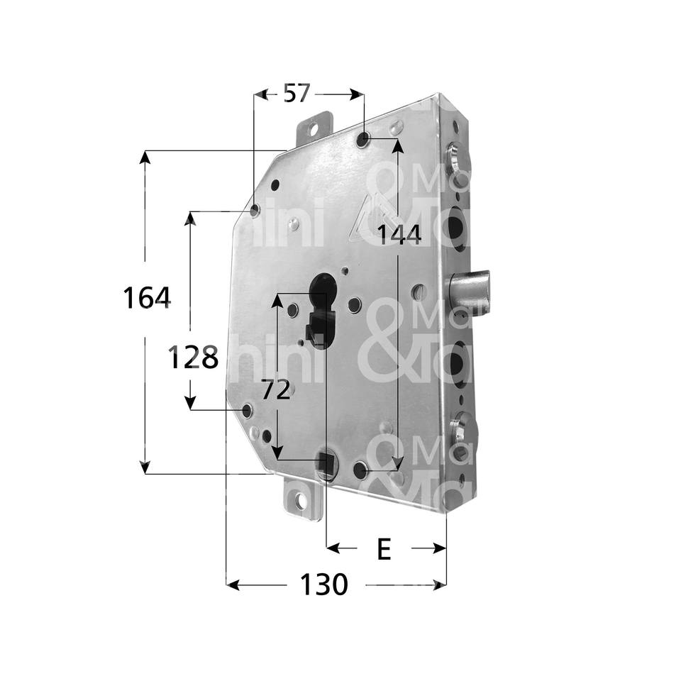 CERRADURA PARA PUERTAS ATORNILLADAS Con triple cilindro plano, 4 tiros y pestillo accionado por cilindro y manilla cuadrada. Cilindro no
