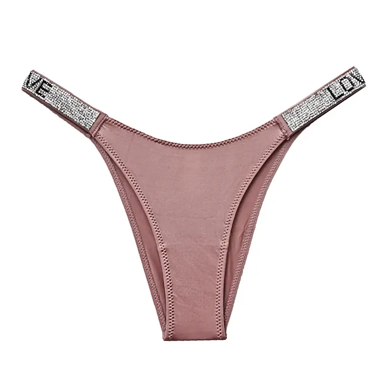 LOVE Letter Rhinestone Bragas Mujeres Calzoncillos rosas Cintura baja Ropa interior sexy Señoras Tangas Panty Lencería para mujer