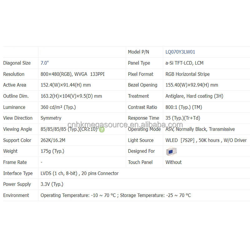 modelo:LQ070Y3LW01