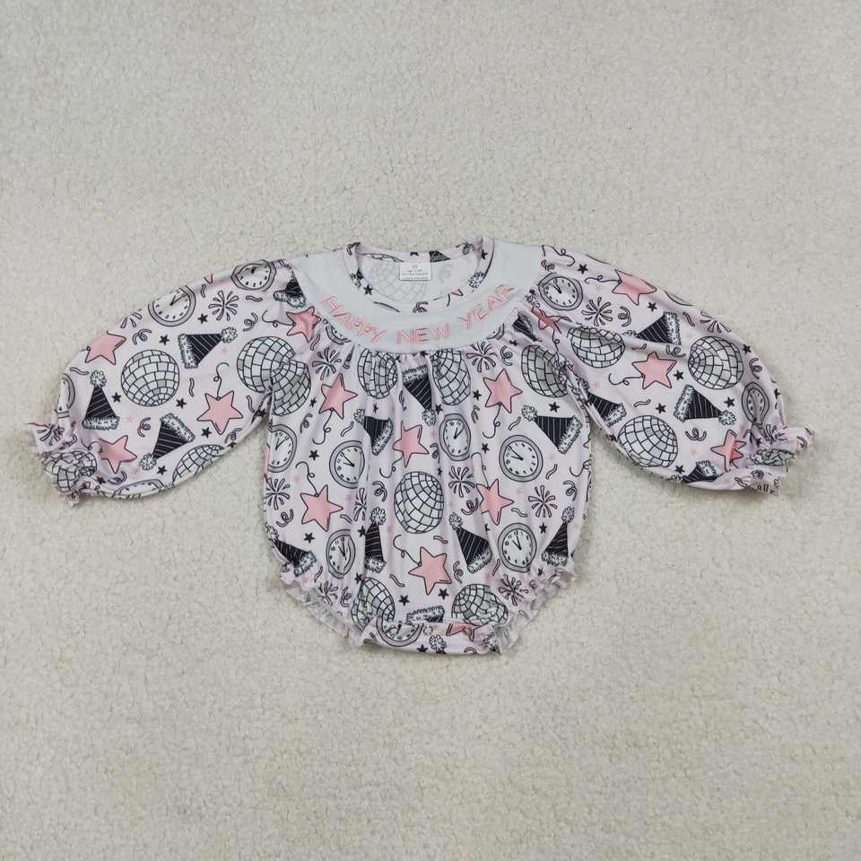 LR2438 RTS Infant Baby Yellow Plaid calabaza pavo bordado niños venta al por mayor mameluco manga larga mono niño conjunto