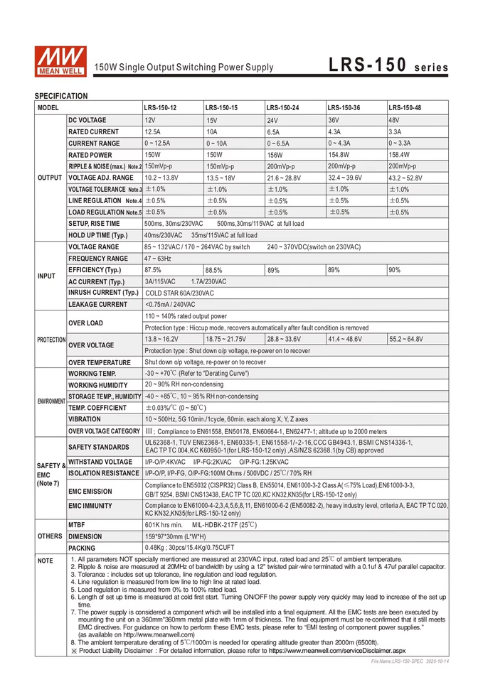 Número de pieza del fabricante:LRS-150-12