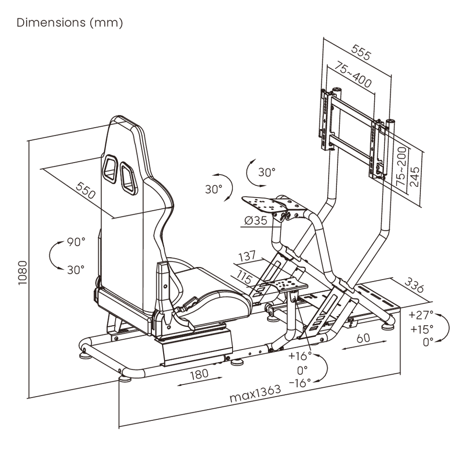 Dimensiones:708x1363x1080 mm (27,9"x53,7"x42,5")