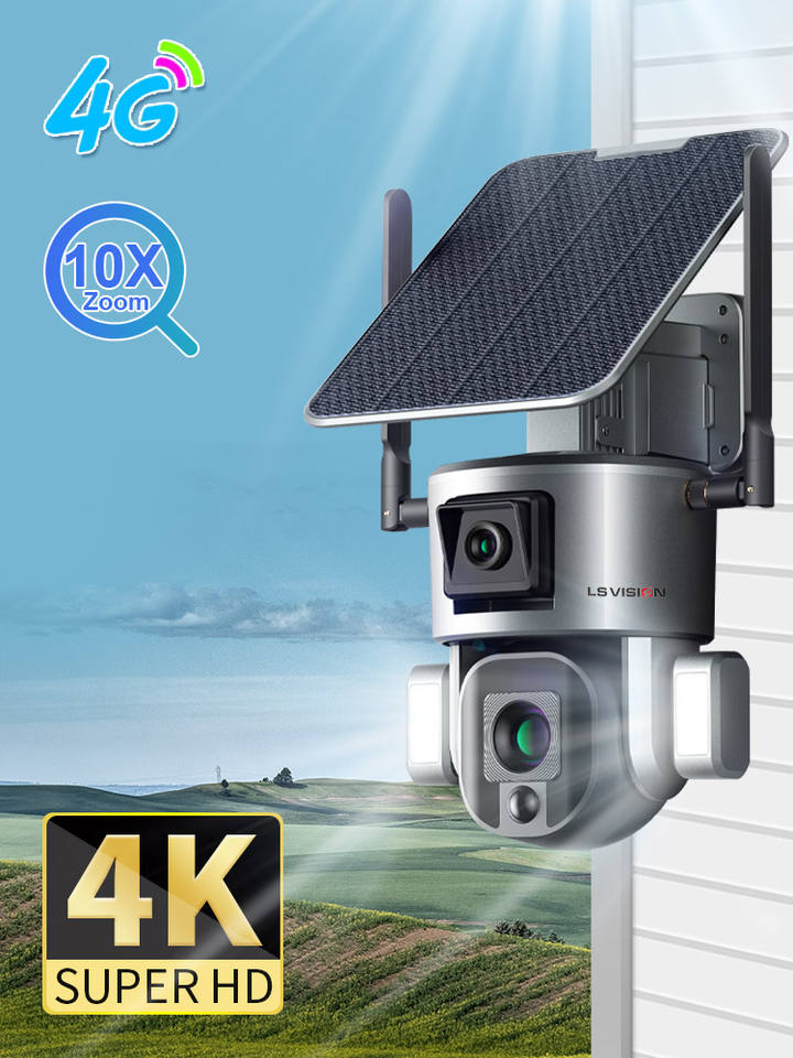 Cámara Solar PTZ Serie Marvelous de LS VISION, 4K, Doble Lente, Impermeable, Seguridad, Seguimiento Automático, WIFI, Zoom Óptico 10X, Batería Integrada, Reflector