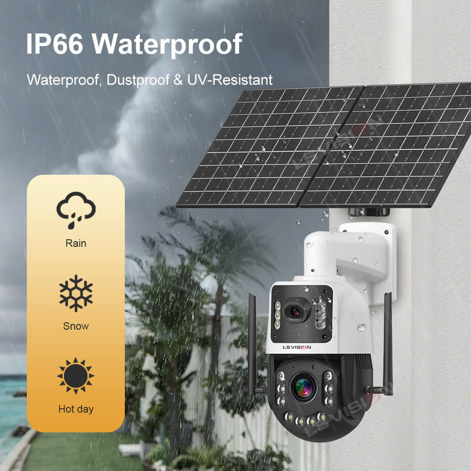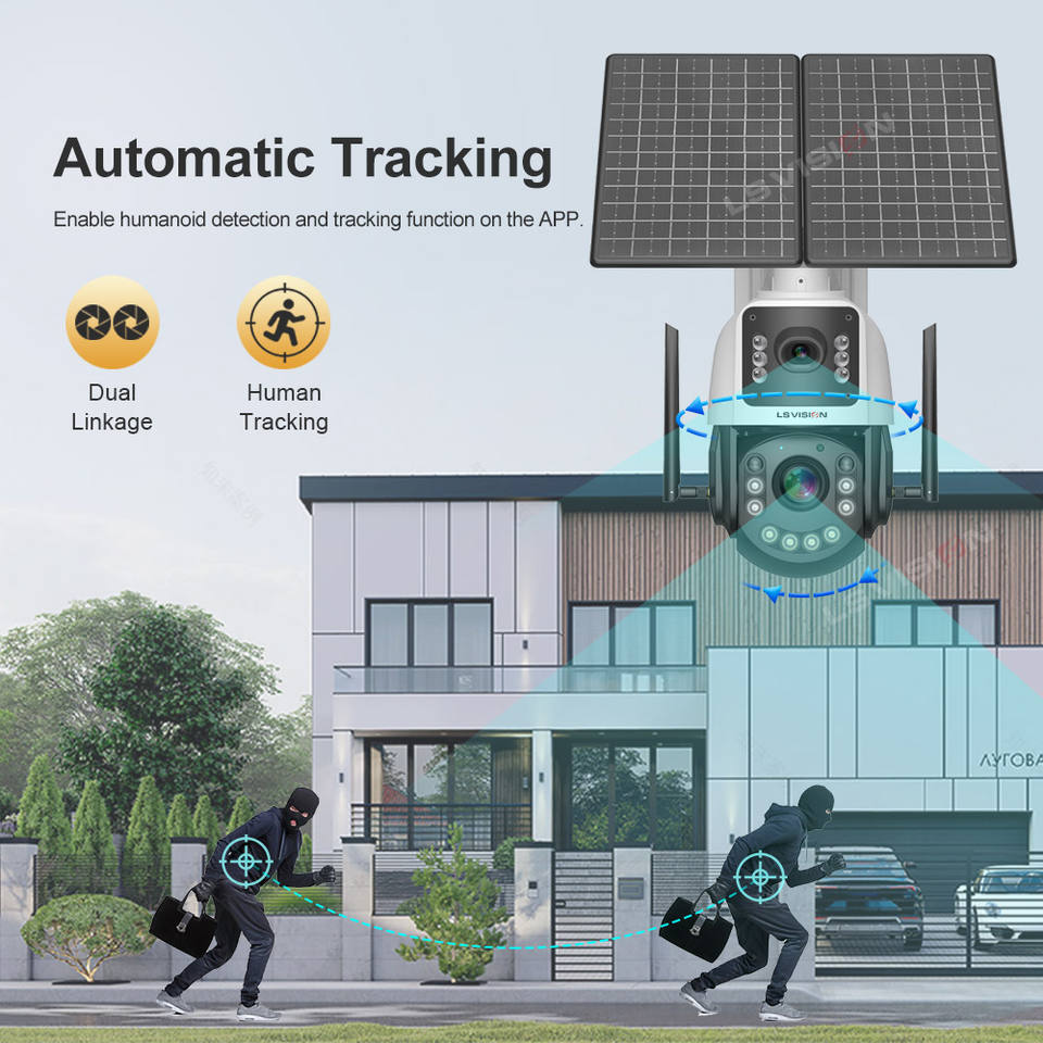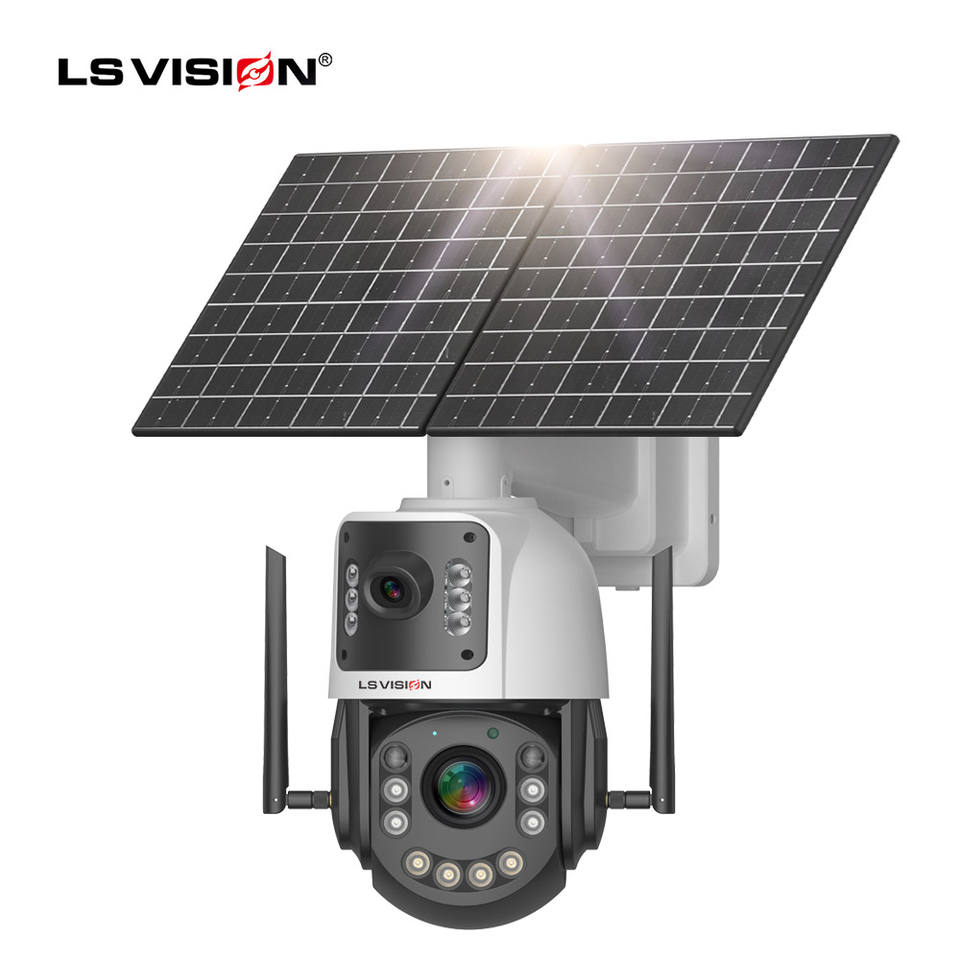 LS VISION 4MP 50X Zoom óptico 4G Pantalla dual AOV Cámara solar Exterior 2K 24/7 Grabación 100M Distancia de detección Cámara de seguridad