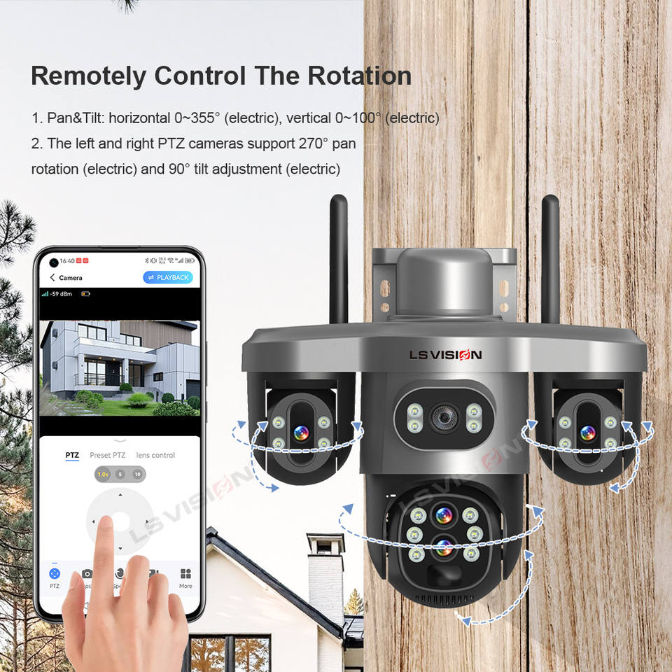 Cámara de Seguridad Solar LS VISION de 6MP con Tres Pantallas y Cuatro PTZ, Exterior, 4G/WiFi, Zoom 10X, Seguimiento Automático Humano, Cámaras CCTV V380 Pro