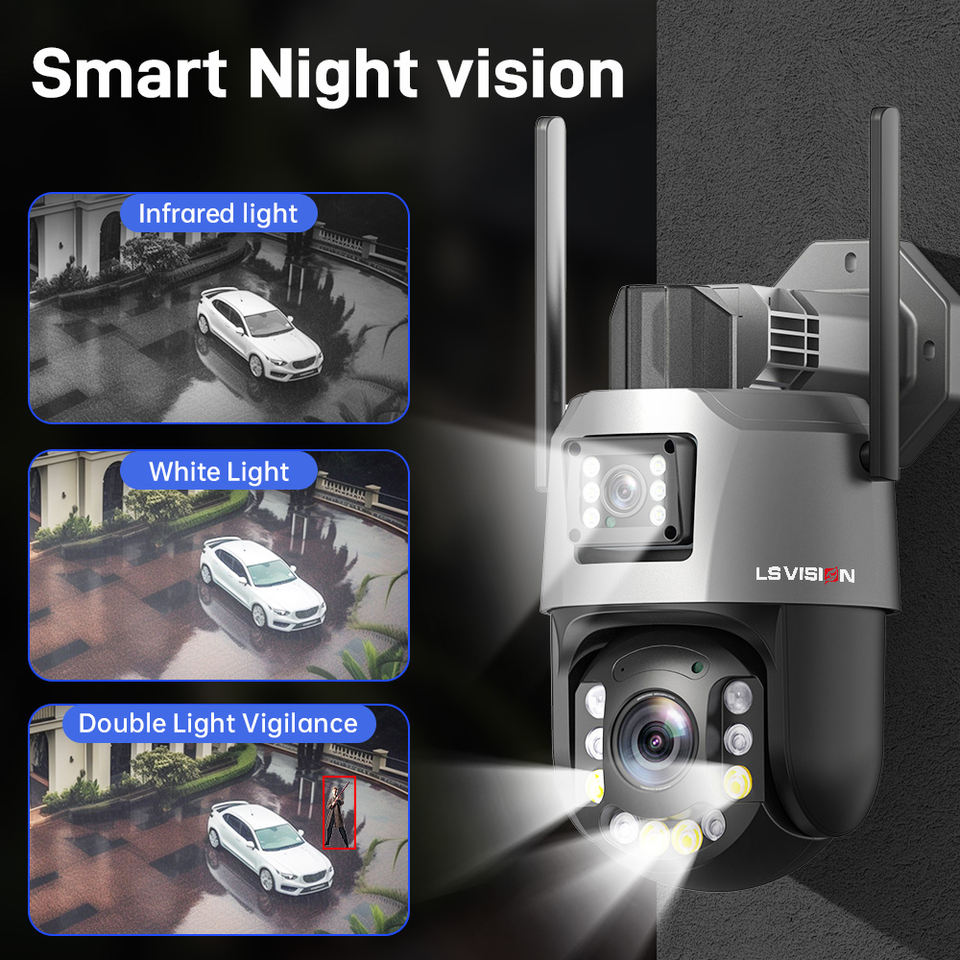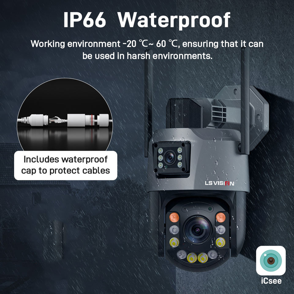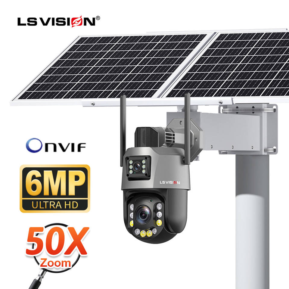 Cámara de Seguridad Inalámbrica PTZ LS VISION ICSEE 3K 6MP para Exteriores, con Doble Lente, Zoom 50X, Impermeable, con Audio Bidireccional, Visión Nocturna e IP66