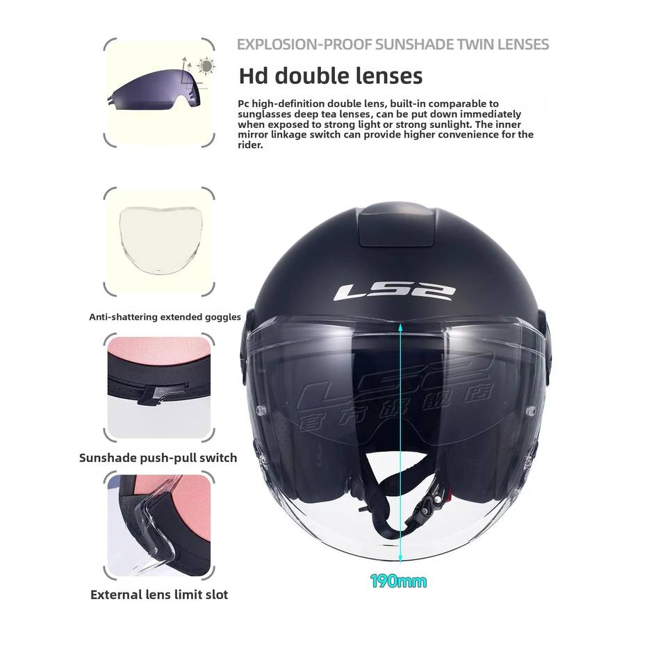 Casco de Motocicleta para Todas las Estaciones LS2 OF620, Medio Casco con Lente Doble, Diseño Tres Cuartos Universal para Scooter, para Hombres y Mujeres, Nuevo Material ABS con Espuma