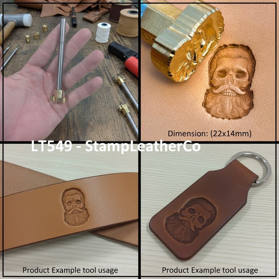 LT549 Sello de cuero 22x14mm Calavera Caballero barbudo 13/15 \ "X 5/9 \" para manualidades