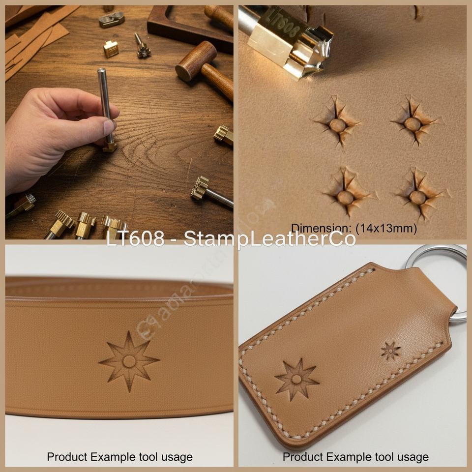 LT608 Sello de cuero Starburst geométrico 14x13mm (5/9 \ "X 1/2 \") para manualidades de cuero