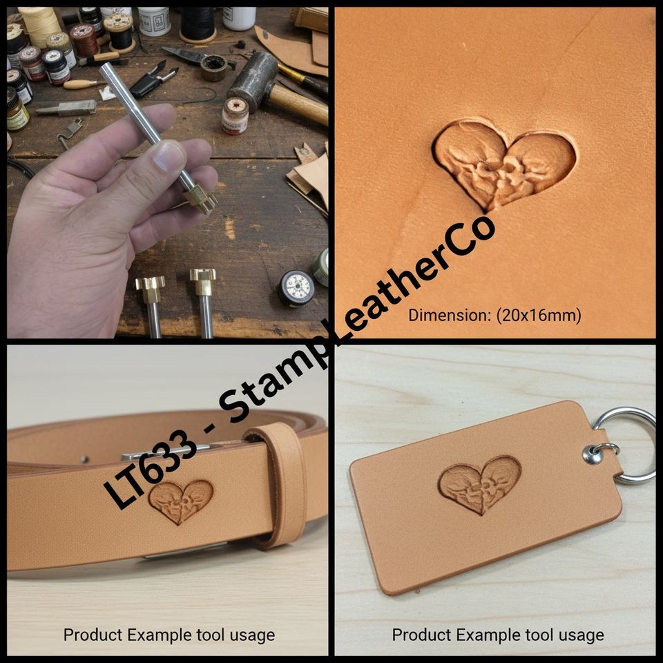 LT633 Heart Kissing Skulls in Heart 20x16mm (11/14 \ "X 5/8 \") Sello de cuero para manualidades de cuero