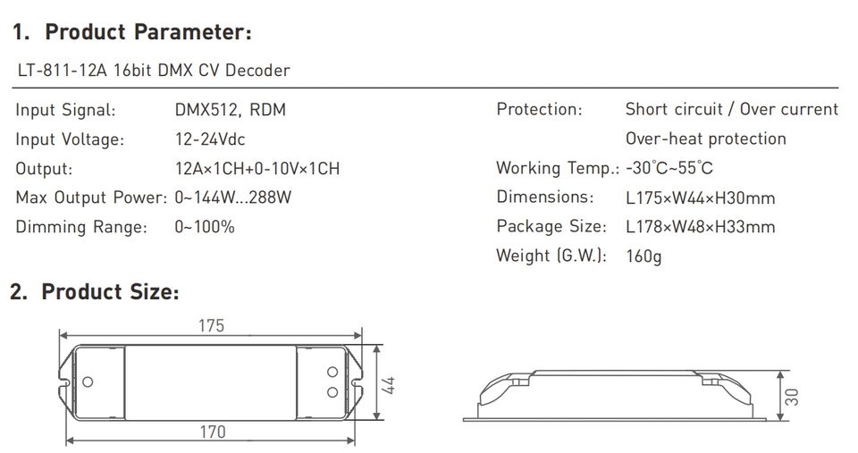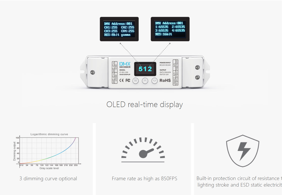 Decodificador DMX/RDM de Voltaje Constante de 16 bits LTECH, Comunicación de Señal DMX512, Lectura/Escritura Remota de Direcciones DMX