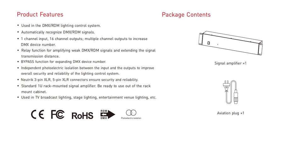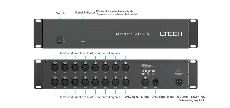 Amplificador y Distribuidor de Señal XLR de 5 Pines DMX/RDM LTECH, Amplificador de Señal de Iluminación de Escenario de 16 Vías