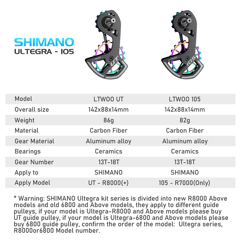 Ruedas Guía de Desviador Trasero LTWOO de 11 Velocidades, Juego de Ruedas de Fibra de Carbono para Bicicleta con Rodamientos Cerámicos, Compatible con 105/UT/Ultegra/DURA