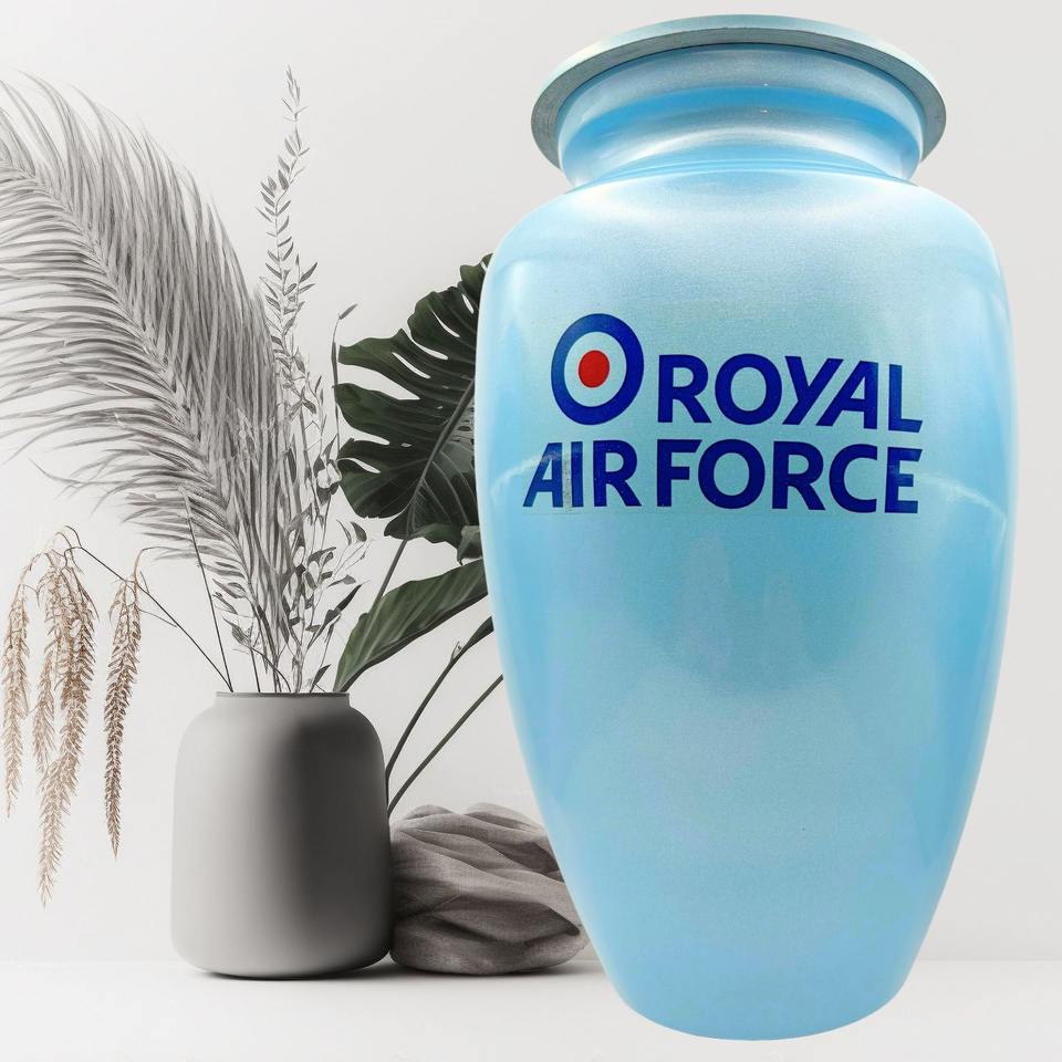 Urna Conmemorativa para Cenizas de Adultos, Estilo Americano, con Emblema de la Fuerza Aérea de Estados Unidos, Esmaltada, Blanca, de 200 Pulgadas Cúbicas, Marca LU