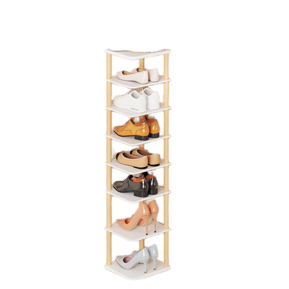 LUCKNOCK Zapatero vertical de 8 niveles Alto Estrecho Independiente Zapatero de madera blanca Torre para entrada Dormitorio Espacios pequeños