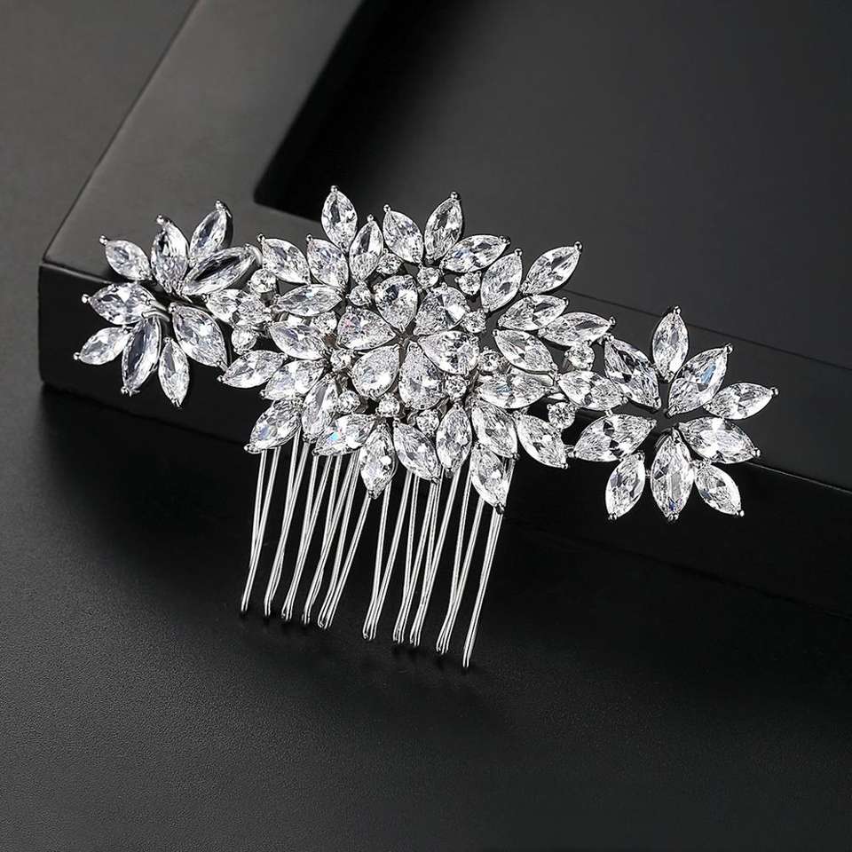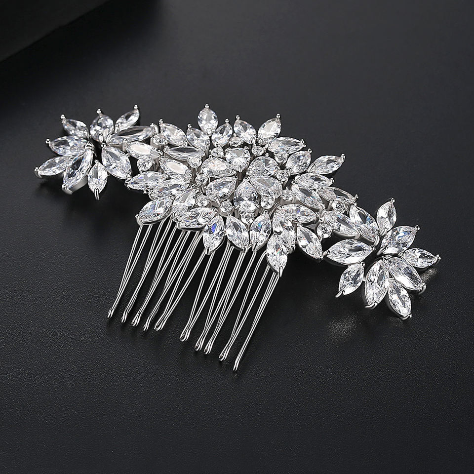 LUOTEEMI-Horquillas para el pelo de circón cúbico para mujer, diseño de joyería de estilo clásico antiguo, flor de lujo, AA, peine de novia