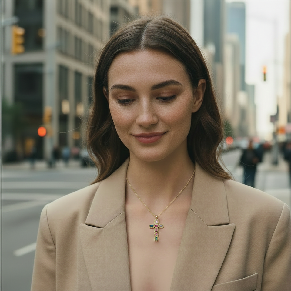 LUOYUNE Collar con Colgante de Jesús Estilo Hip Hop, Chapado en Oro de 18K, Latón con Circonita Cúbica, San Judas con Cruz, para Venta al por Mayor y DIY
