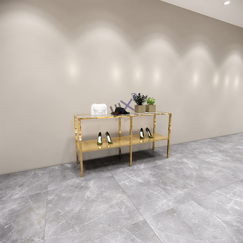 LUX, estante de exhibición de zapatos de ropa de mujer personalizado, fábrica de titanio electrochapado inoxidable dorado, alta calidad, 5 años de garantía 500