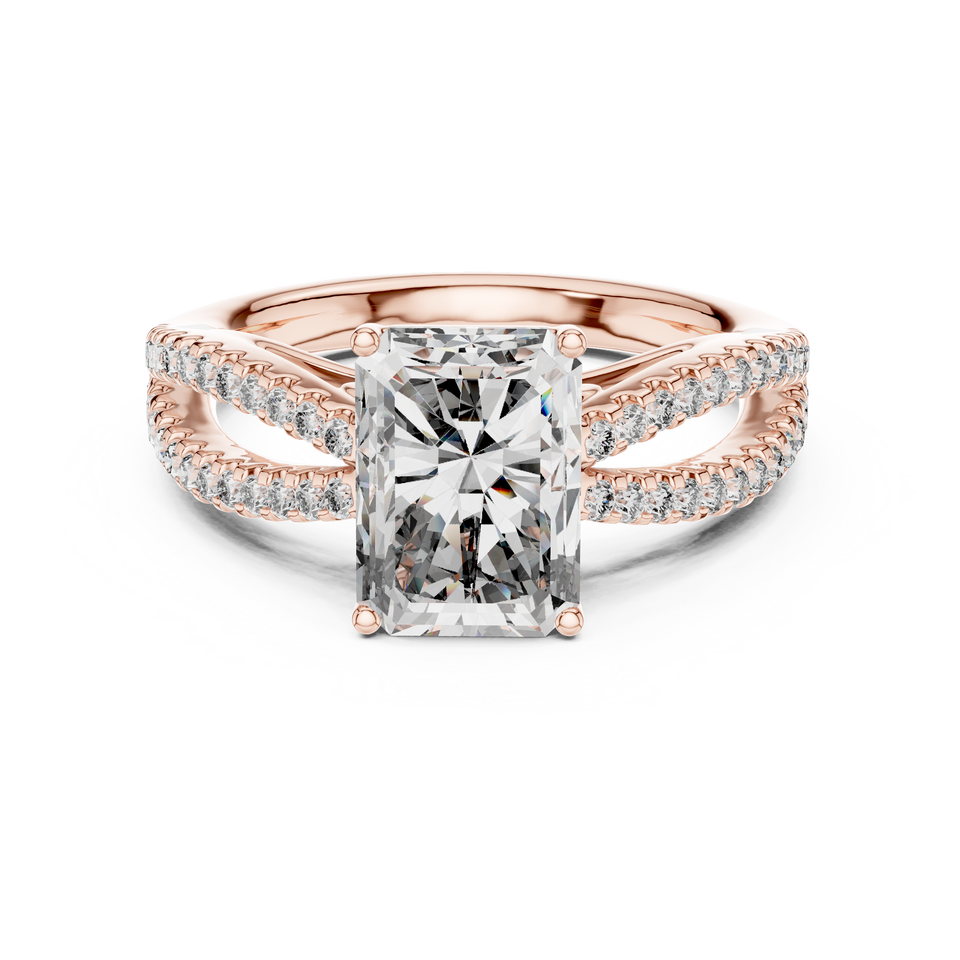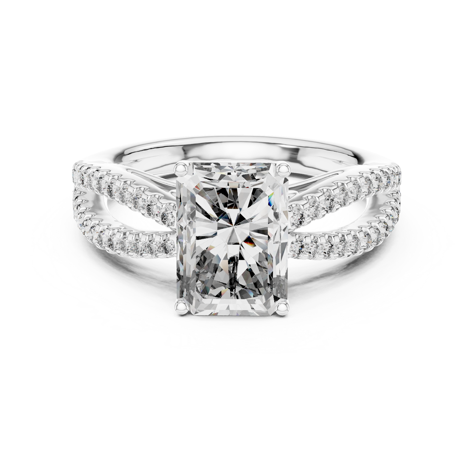 Anillo de Diamantes Radiantes Cultivados en Laboratorio de 2 Quilates con Certificación IGI de Lujo para Mujer, con Banda Dividida y Pavé, Oro Amarillo de 18 Quilates con Baño de Rodio, para San Valentín o Boda