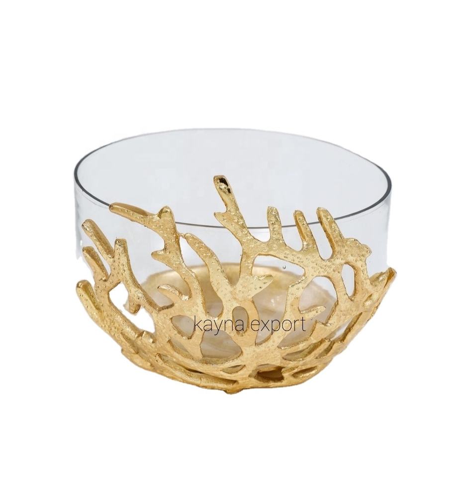 Soporte decorativo de lujo con plataforma dorada, cuenco de vidrio para tuercas y citas, RAMZAN COLLECTION, tazón decorativo