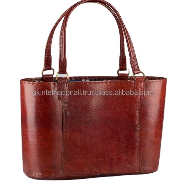 BOLSO DE CUERO HECHO A MANO DE LUJO CON FORRO DISTINTIVO EN COLOR TAN OSCURO