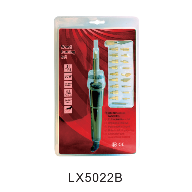 LX5022B-pluma de pirograbado artesanal, juego de herramientas con caja de plástico transparente, soldador eléctrico para quemar madera, 22 Uds.