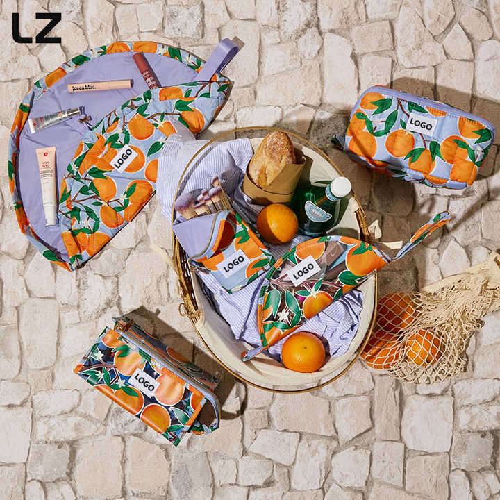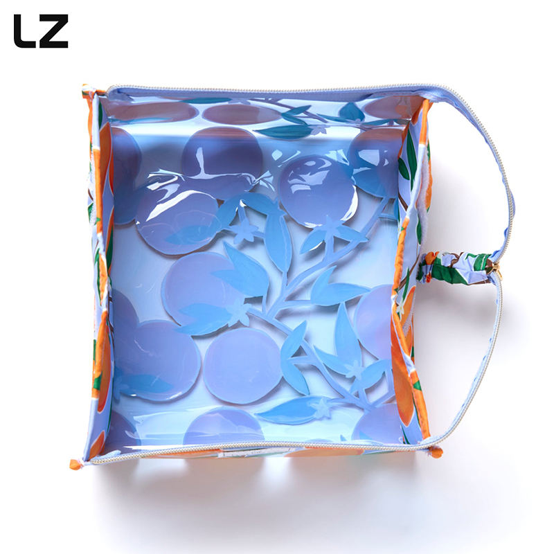 LZ impresión personalizada abierta plana caja de maquillaje bolsa de viaje bolsa de cosméticos conjunto organizador de maquillaje impermeable para mujeres uso diario