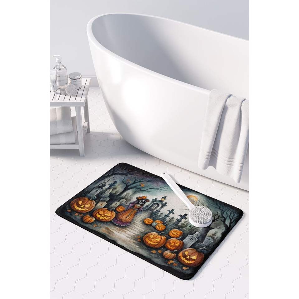 Alfombra de cocina de Halloween con esqueleto de La Catrina, alfombra de baño antifatiga de espuma viscoelástica, cojín cómodo lavable a máquina espeluznante para Cocina
