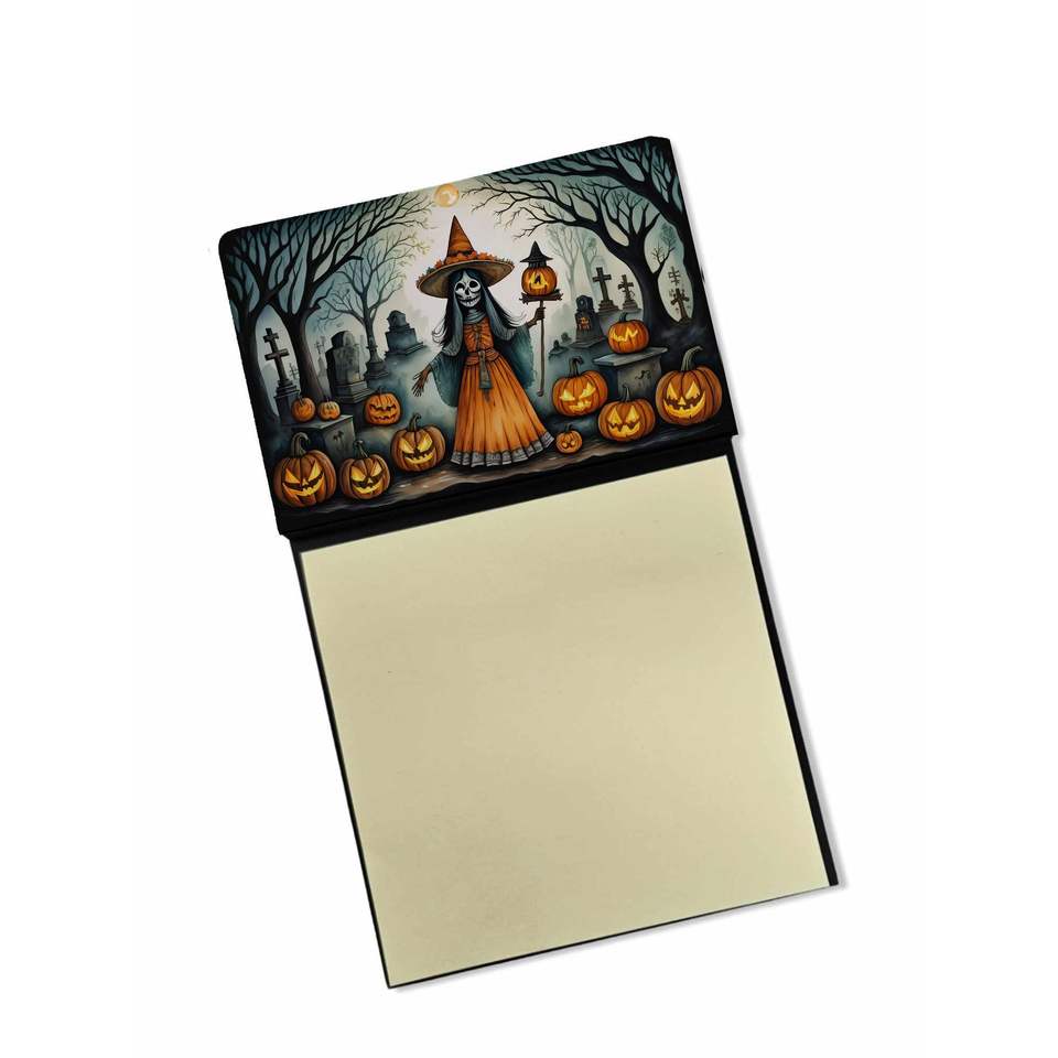Soporte para notas adhesivas de Halloween con esqueleto de La Llorona, accesorios de escritorio en blanco autoadhesivos, dispensador recargable, suministros para vacaciones