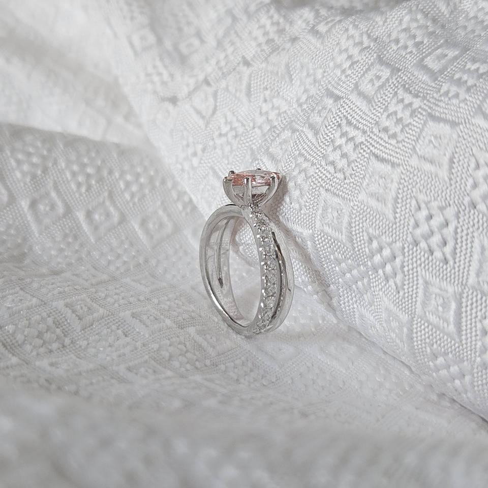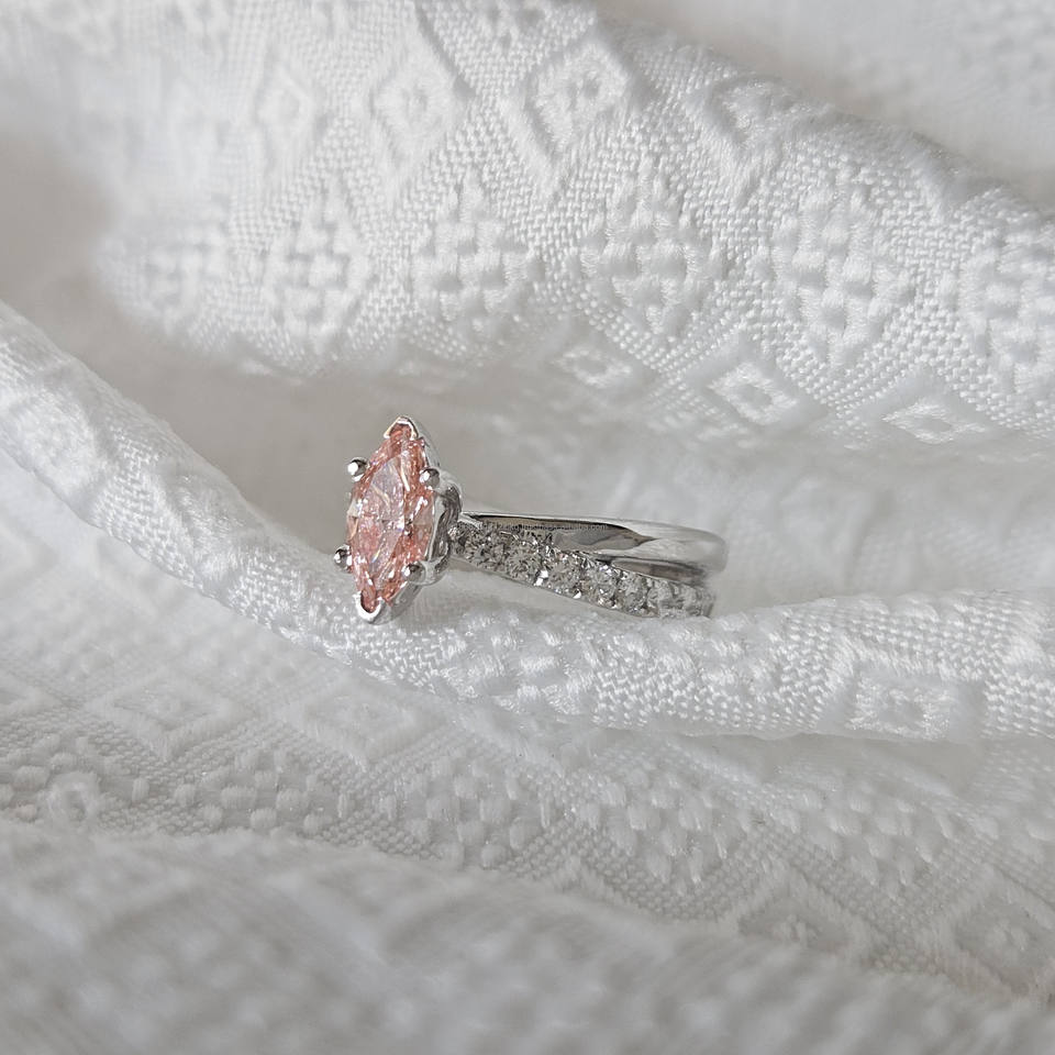 Anillo de diamante de oro blanco de 14 quilates personalizado de Plata de Ley 925 creado en laboratorio, banda de boda de corte Marquesa rosa para mujer, anillos de moissanita