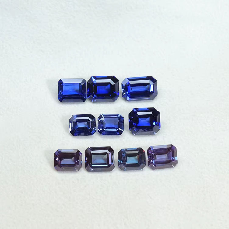 Zafiro azul creado en laboratorio y alejandrita 10 piezas facetadas corte esmeralda sintético