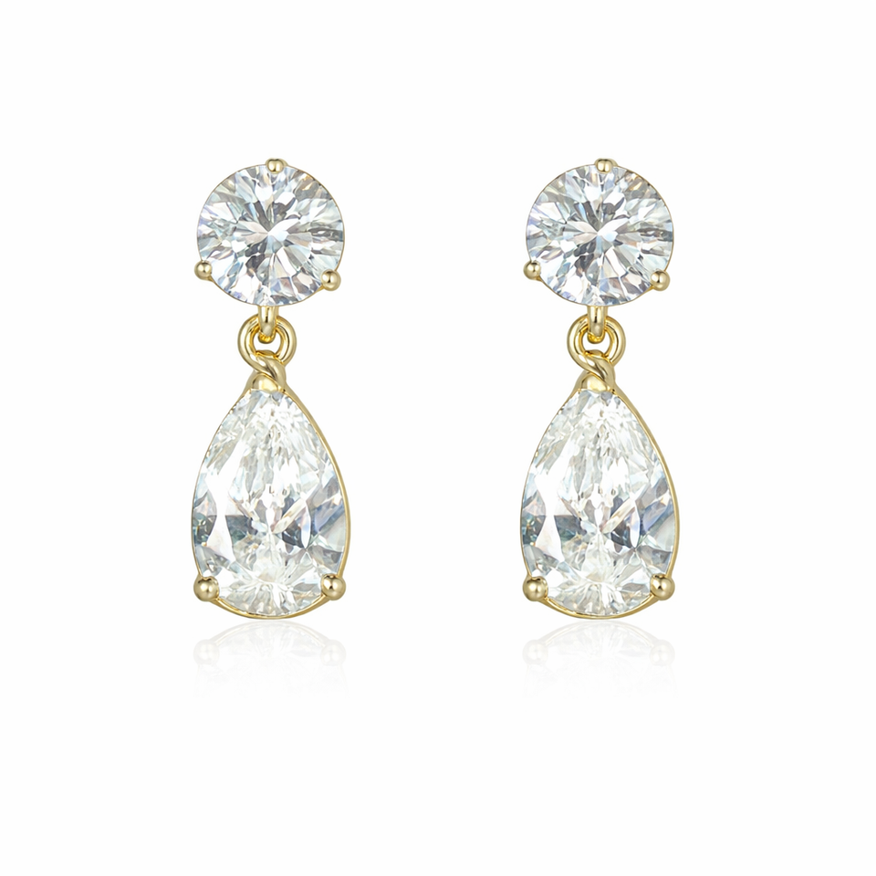 Aretes de oro macizo de 18 quilates con 2 piedras en forma de pera y gota redonda